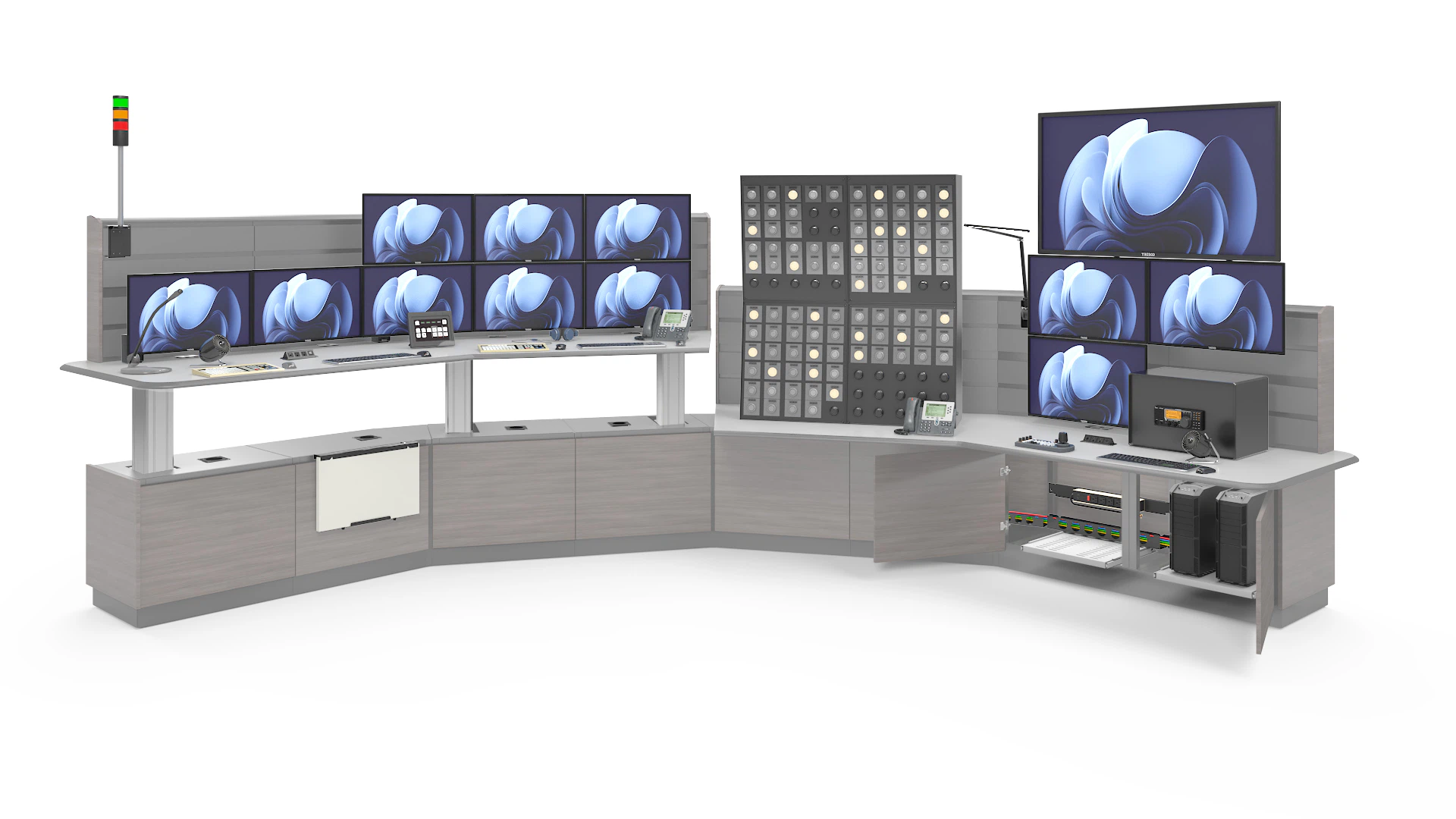 Tresco’s new line of consoles is designed to integrate seamlessly with these ergonomic requirements. The AEGIS console, built for speed and deployment in security-focused environments, allows operators to maintain ideal sightlines with compact monitor setups that pair naturally with video walls. The NEXUS console, Tresco’s most versatile and modular solution, is often deployed in utilities and transportation centers where room monitor layouts must work in harmony with expansive video walls. For mission-critical, high-intensity environments, the VANGUARD console features advanced sit-stand and motorized monitor backwalls, giving operators precise control over viewing angles even in multi-tiered display environments.